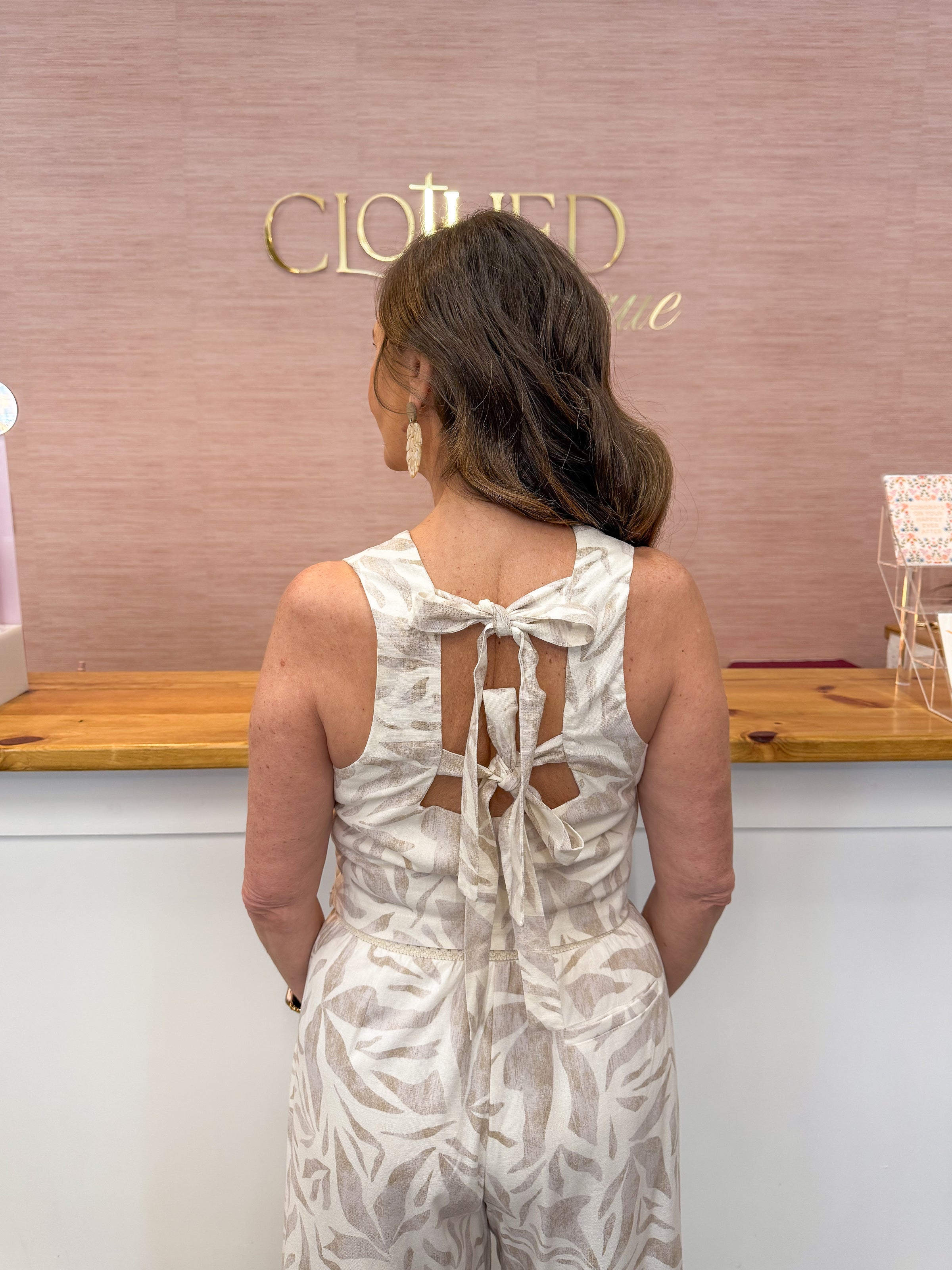 - Shown with: Driftwood Dreams Printed Pants and Margaret Raffia Heels